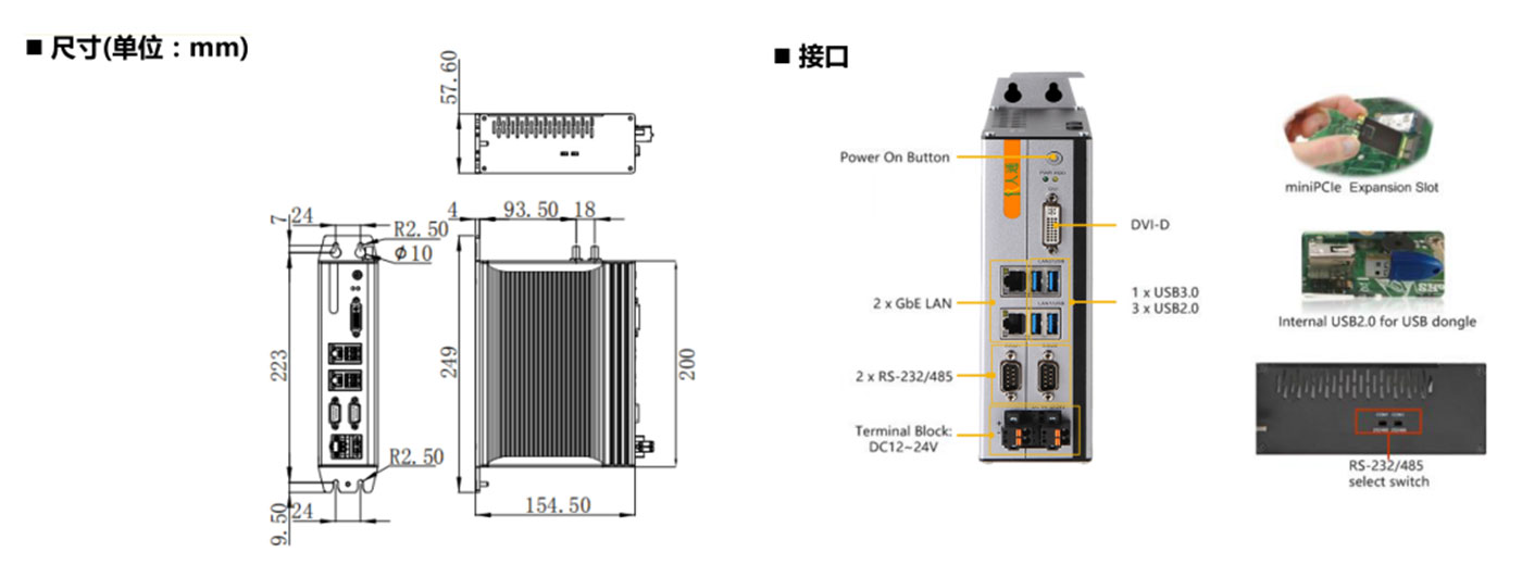 | COM | 2xCOM(DB-9),支持RS-232/485模式選擇 | ||